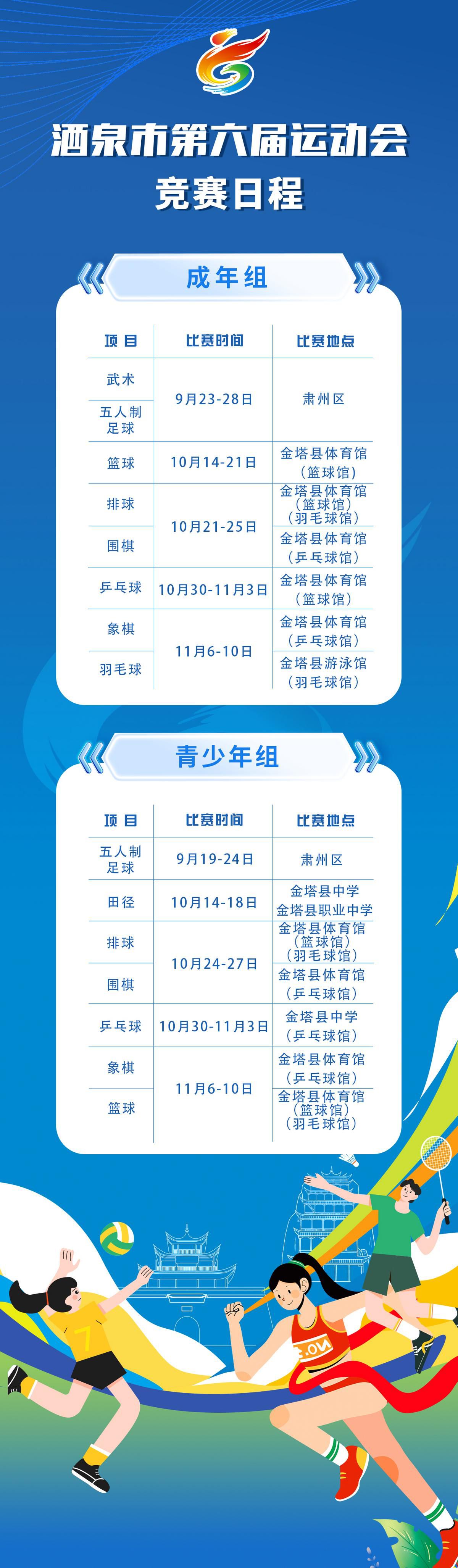 【聚焦市六運(yùn)會(huì)】收藏!酒泉市第六屆運(yùn)動(dòng)會(huì)競(jìng)賽日程來了
