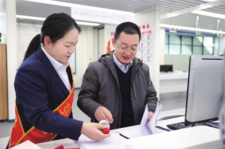 酒泉市政務(wù)服務(wù)中心工作人員為前來辦事的群眾提供幫辦代辦服務(wù)。王鈺涵