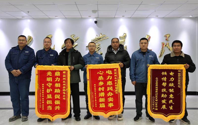 1月7日,國網(wǎng)瓜州縣供電公司收到多面滿載謝意的錦旗。鎖陽城鎮(zhèn)各村組代表將印著“電力惠民辦實事 心系鄉(xiāng)村譜新篇”等字樣的錦旗送到工作人員手中,以此感謝該公司在農(nóng)房改造項目中提供的全程電力保障與貼心服務(wù)。